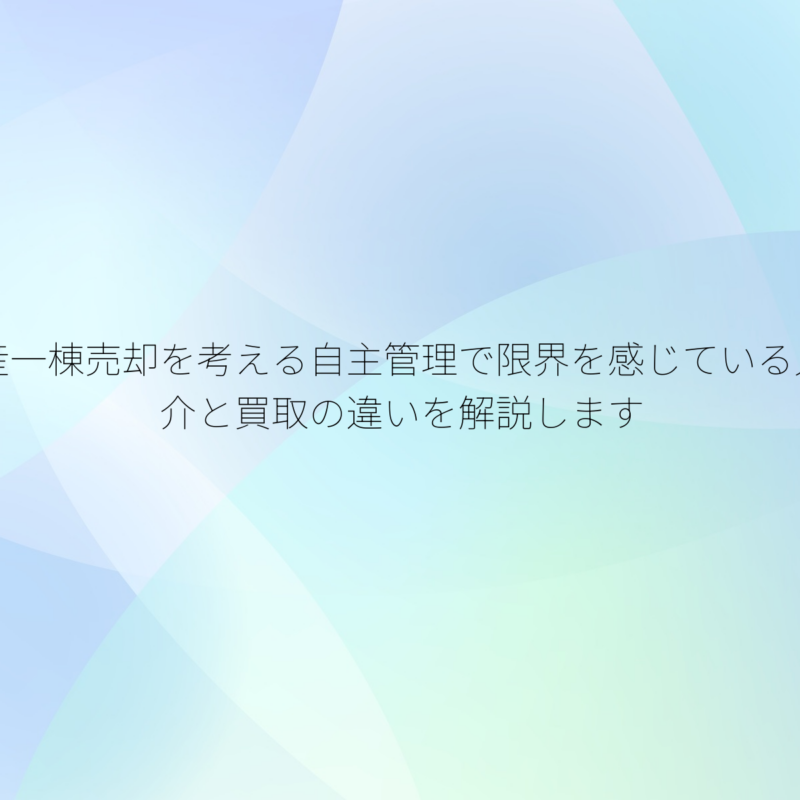 不動産一棟売却を考える自主管理で限界を感じている人へ仲介と買取の違いを解説します